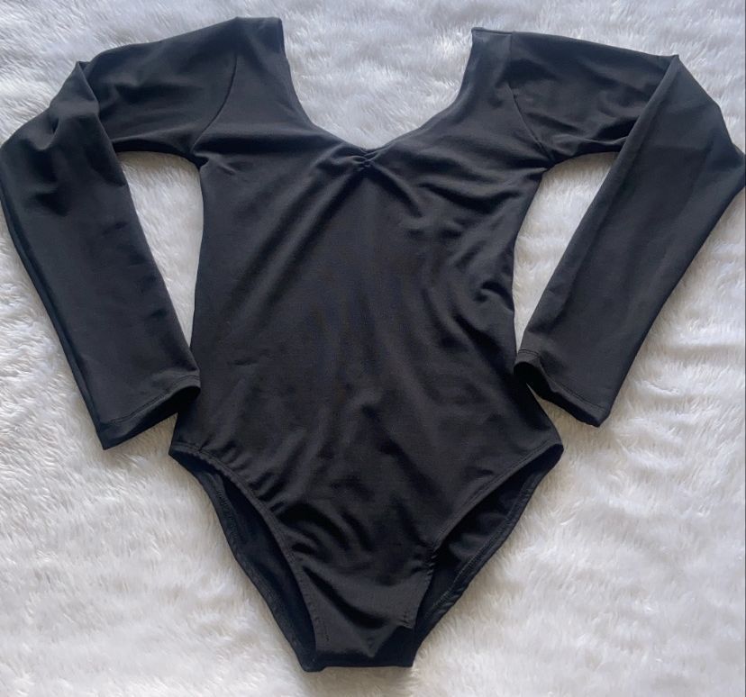 Collant Maga Longa em Helanca com decote redondo, com preguinhas no decote que fica um charme.