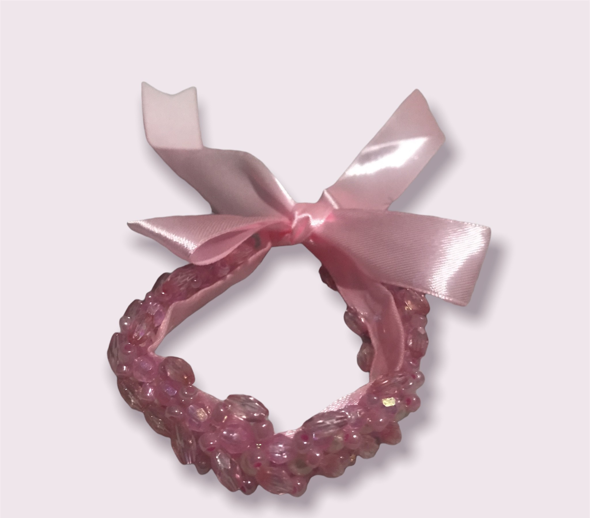 Material: pedrinhas sintéticas, perolas, miçangas , fita de cetim